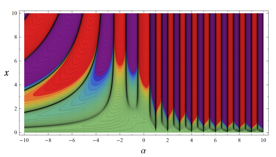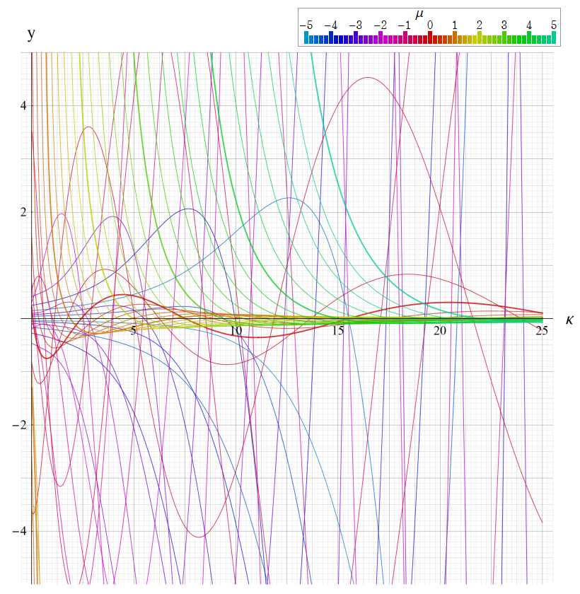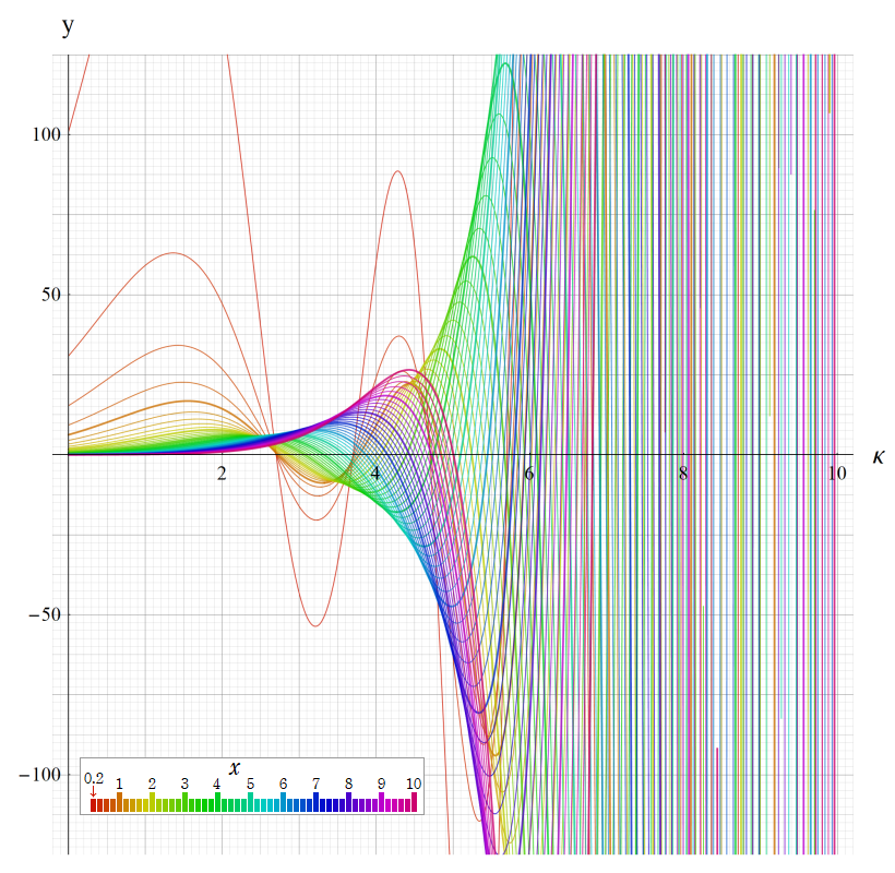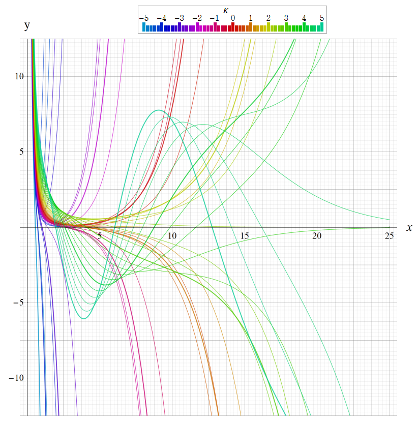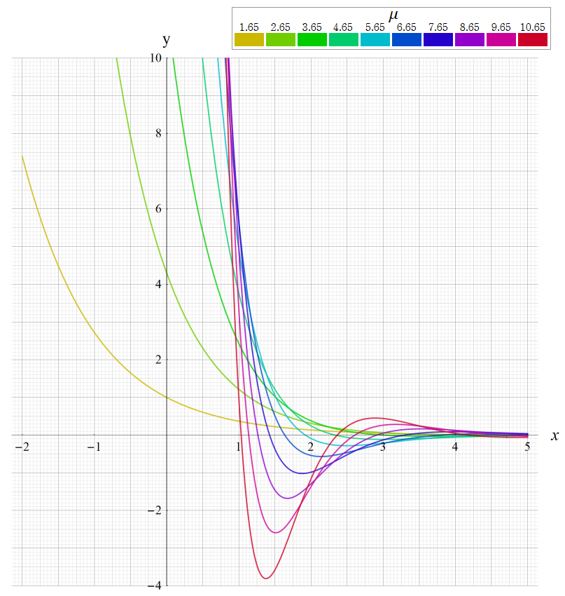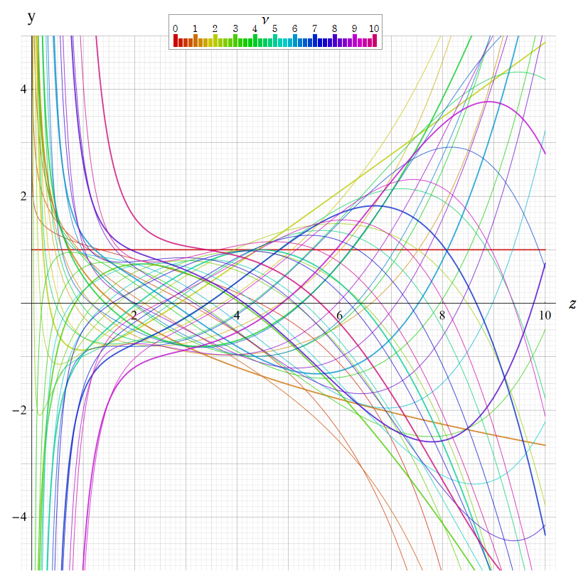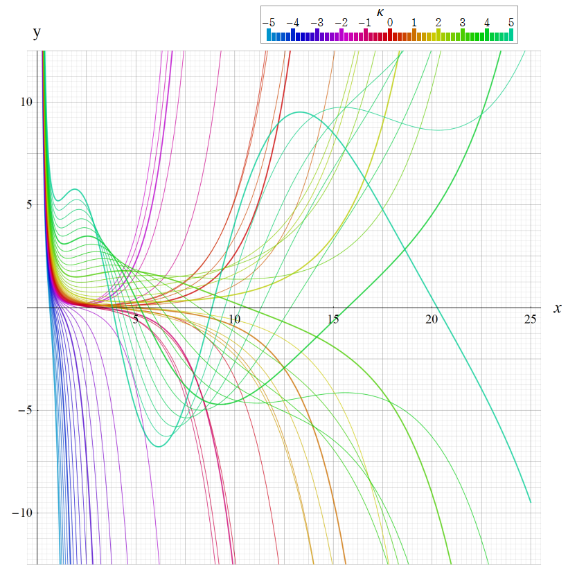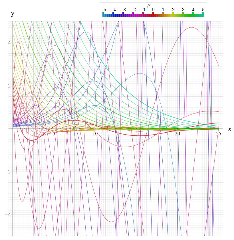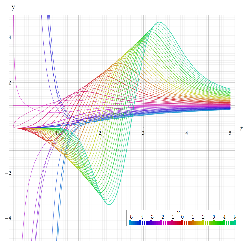 ※4:したがって、これらの頁で既に合流型超幾何関数のグラフを掲載したとも言える。実際、合流型超幾何関数のグラフは Laguerre 陪関数のそれに大変似ている。