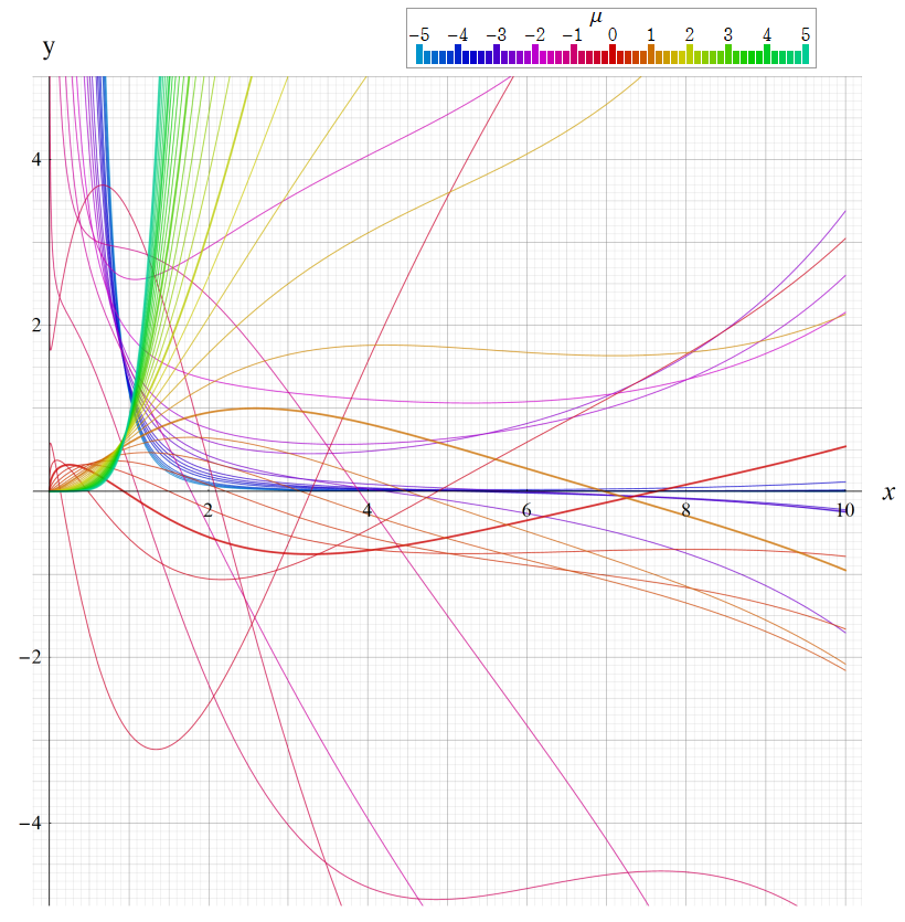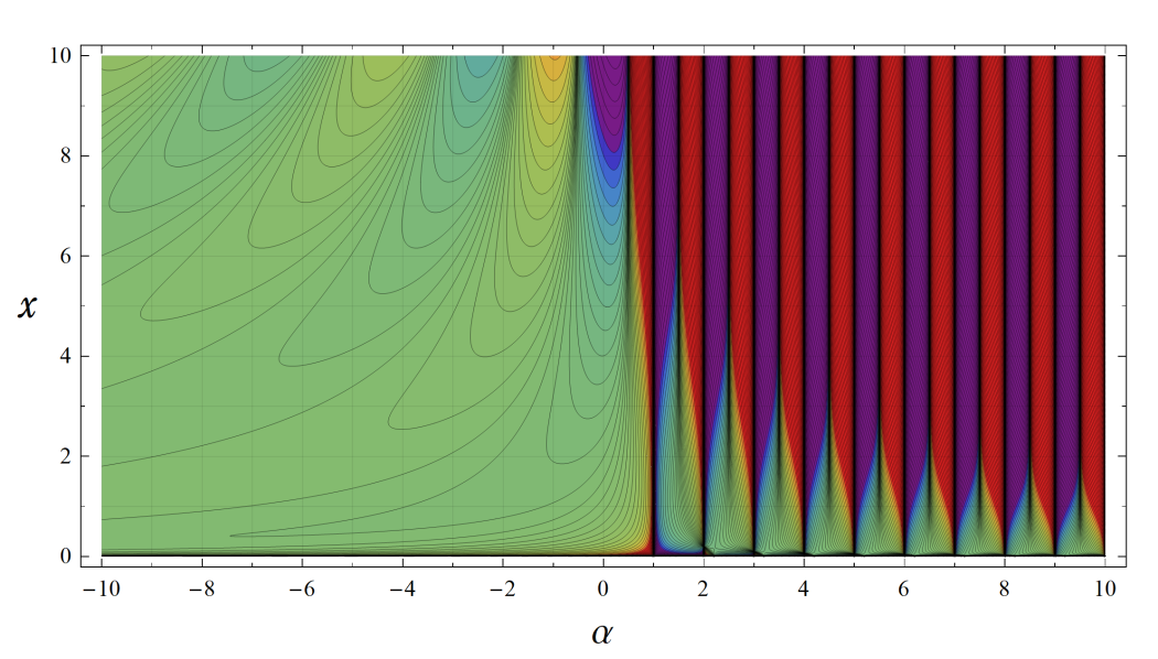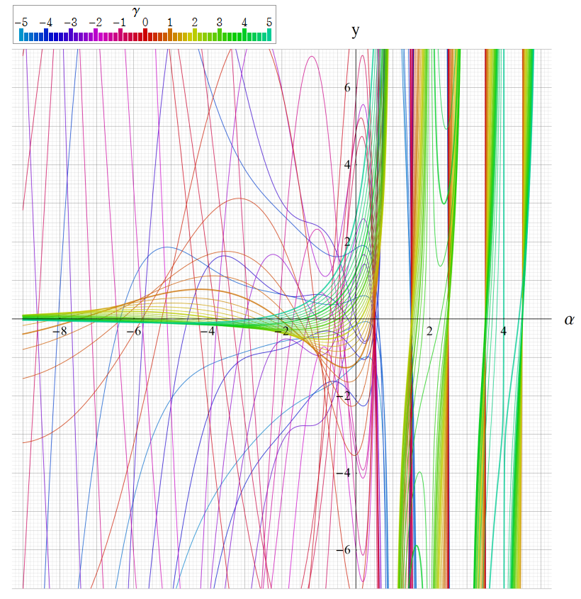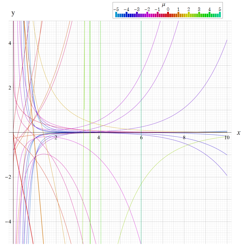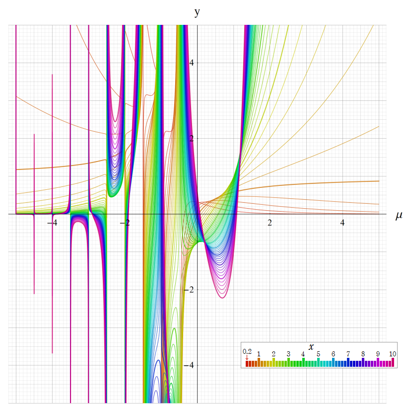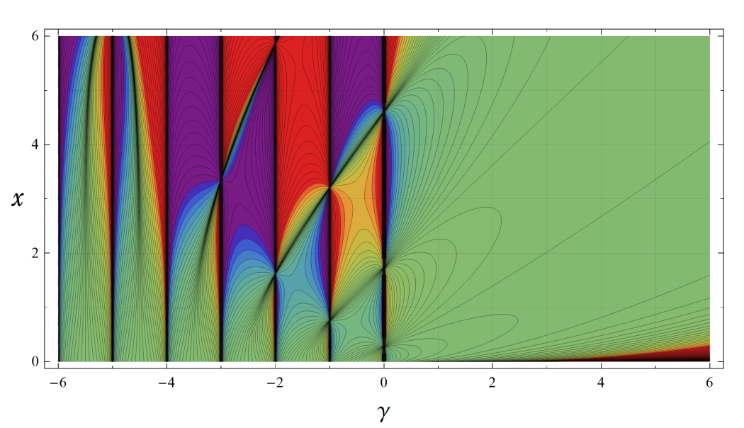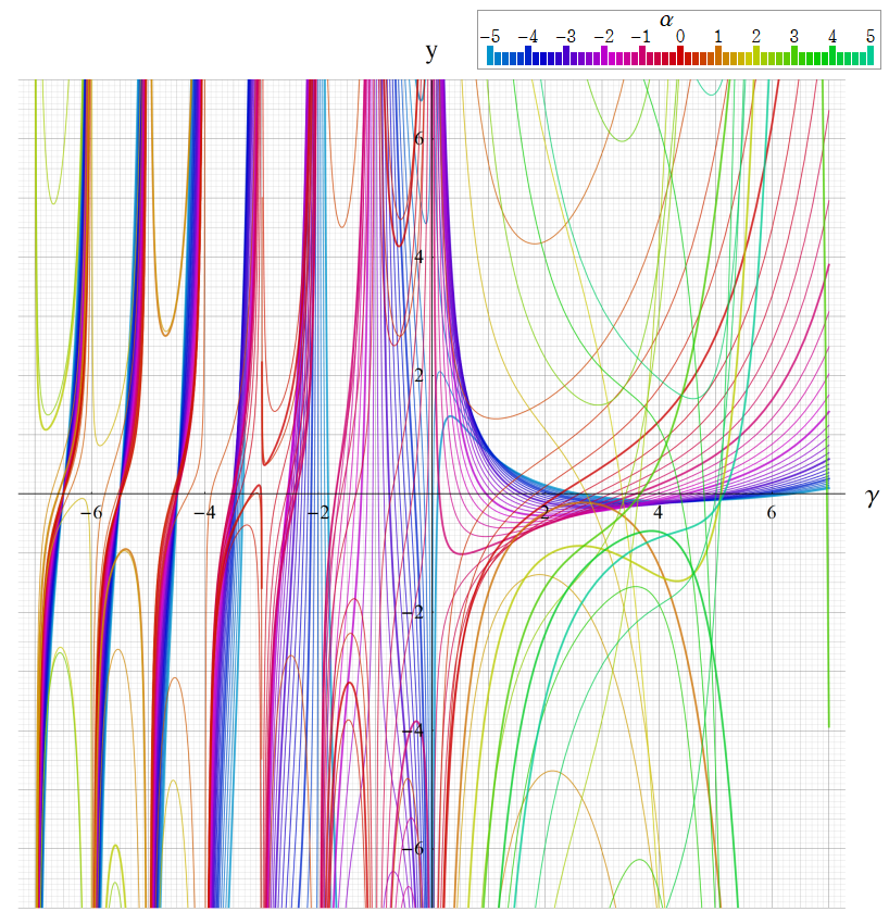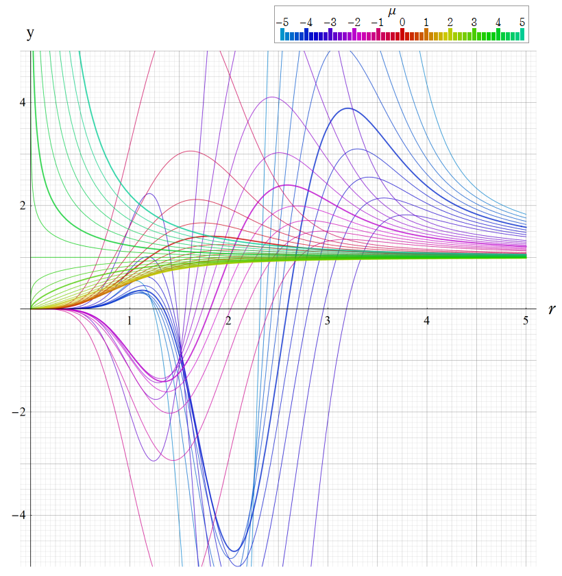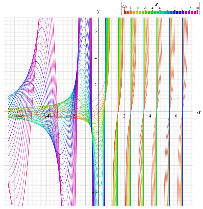 ※4:したがって、これらの頁で既に合流型超幾何関数のグラフを掲載したとも言える。実際、合流型超幾何関数のグラフは Laguerre 陪関数のそれに大変似ている。