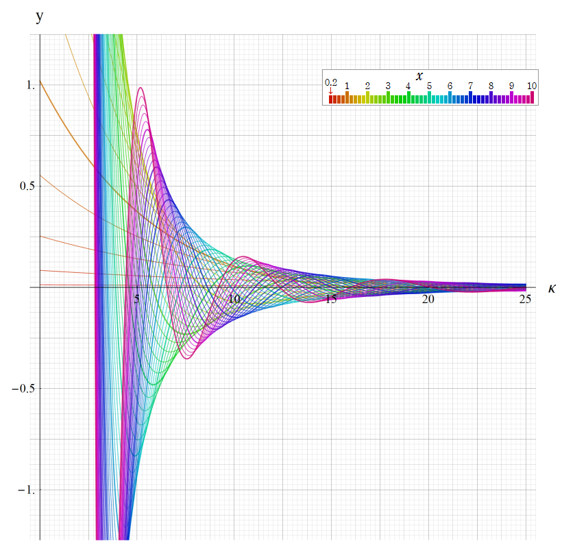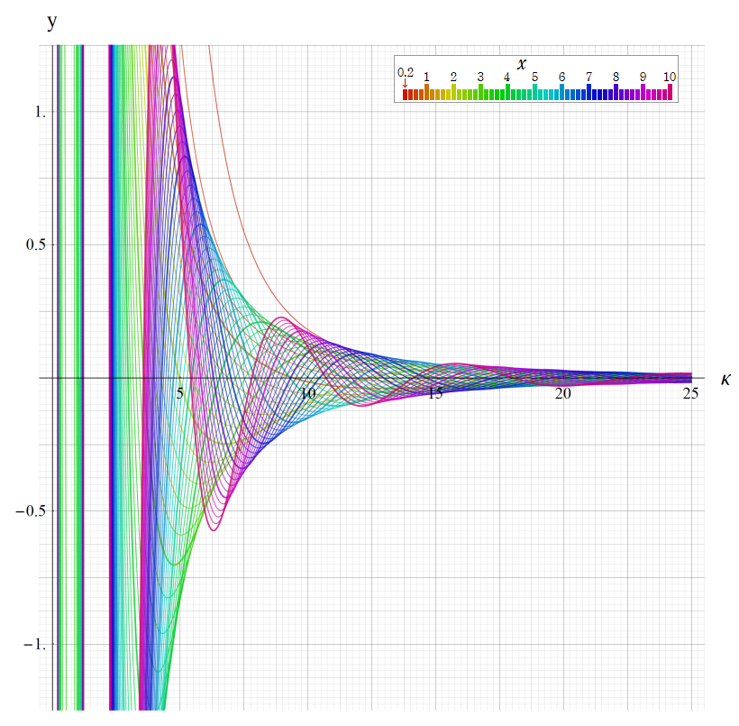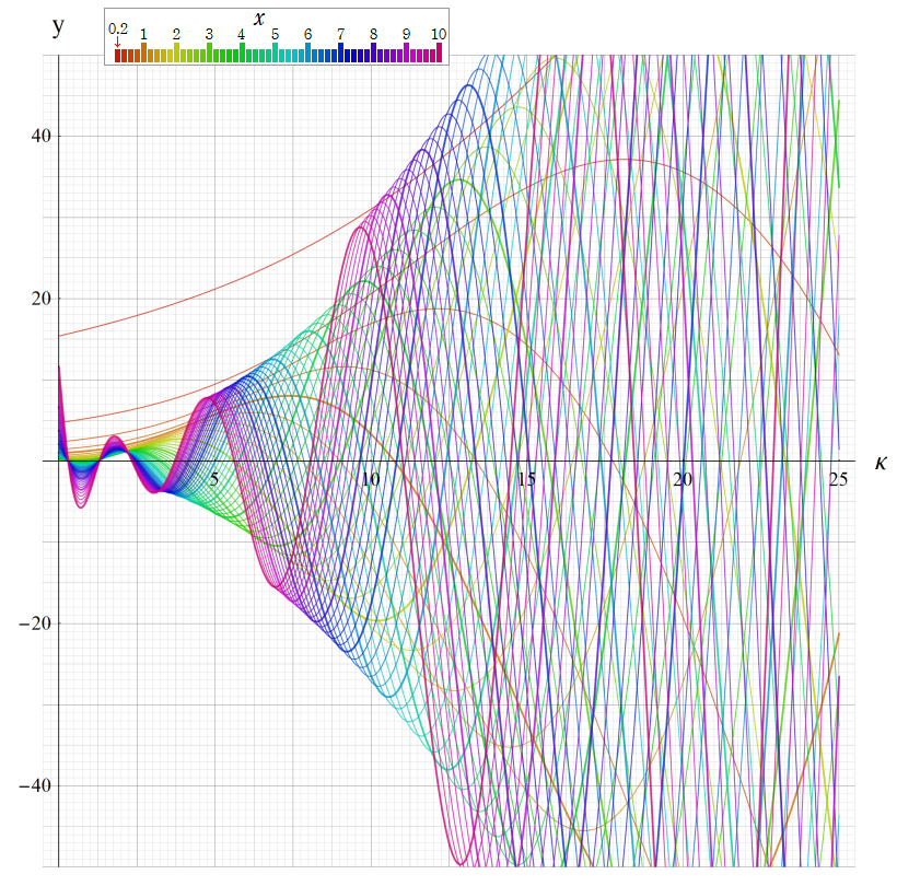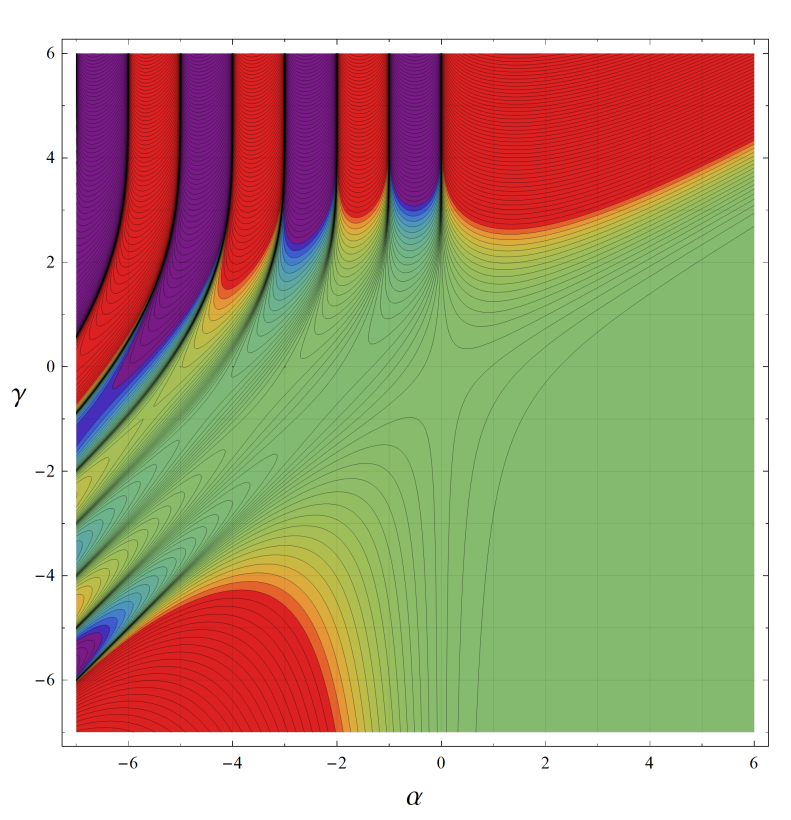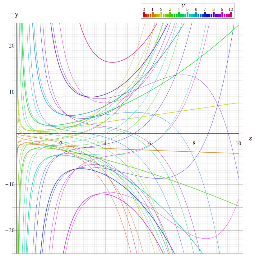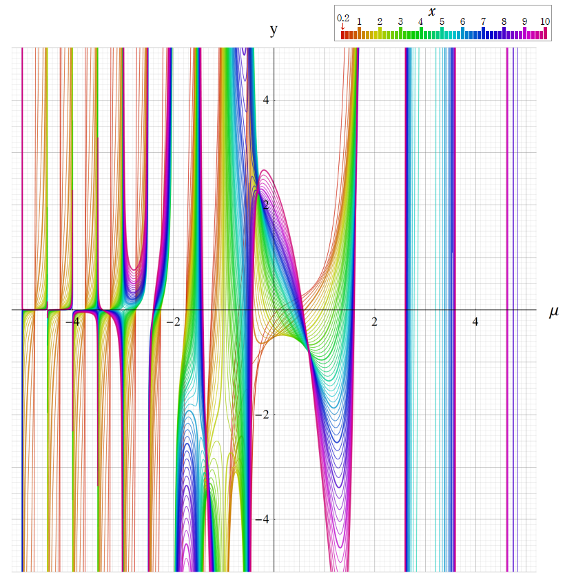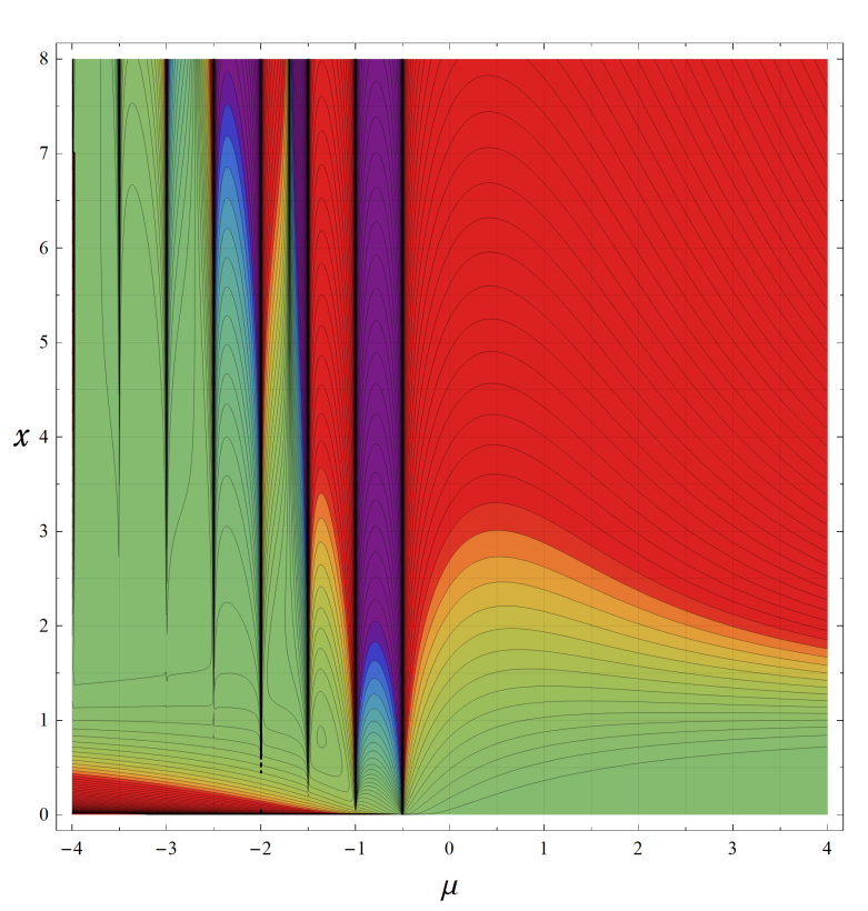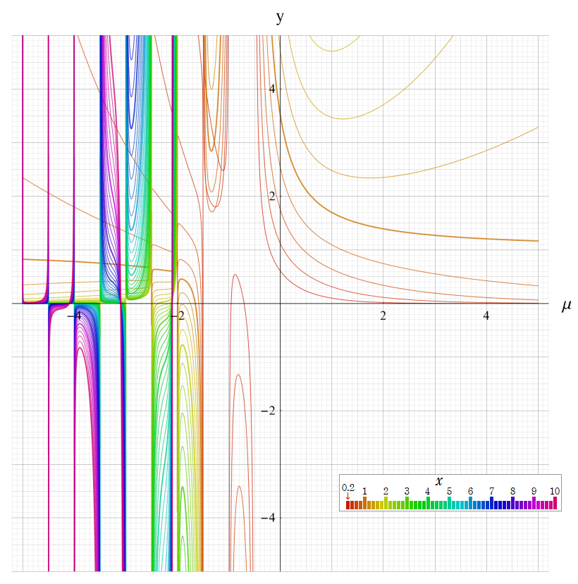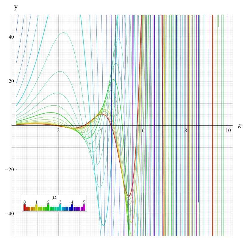 ※4:したがって、これらの頁で既に合流型超幾何関数のグラフを掲載したとも言える。実際、合流型超幾何関数のグラフは Laguerre 陪関数のそれに大変似ている。