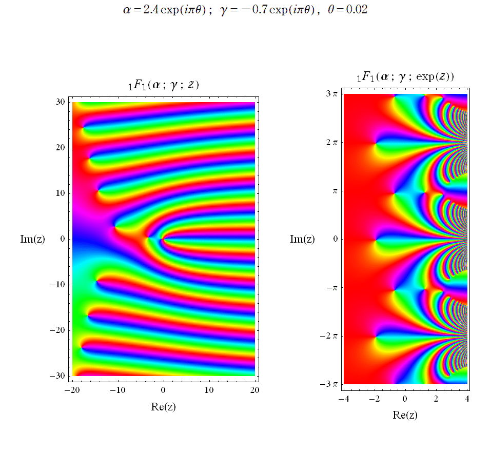 ※2:一般に、Fuchs 型の常微分方程式の確定特異点が合流して生じる微分方程式を 「合流型微分方程式」、その解を 「合流型関数」 と総称することがある。超幾何関数よりも高いクラスの例では、Heun 関数とその合流型関数がある。