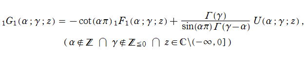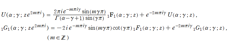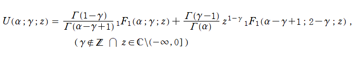 を越える解析接続、線形漸化式、漸近級数展開式、積分表示式、および連分数展開式等は、合流型超幾何関数のそれから導くことができ、しかもその結果はNISTの13.14~13.23に詳しく載っているので省略する。