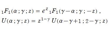 を Kummer 関数 (Kummer の合流型超幾何関数)、