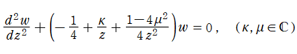 「Whittaker の微分方程式」 と呼ばれる、2階の線形常微分方程式